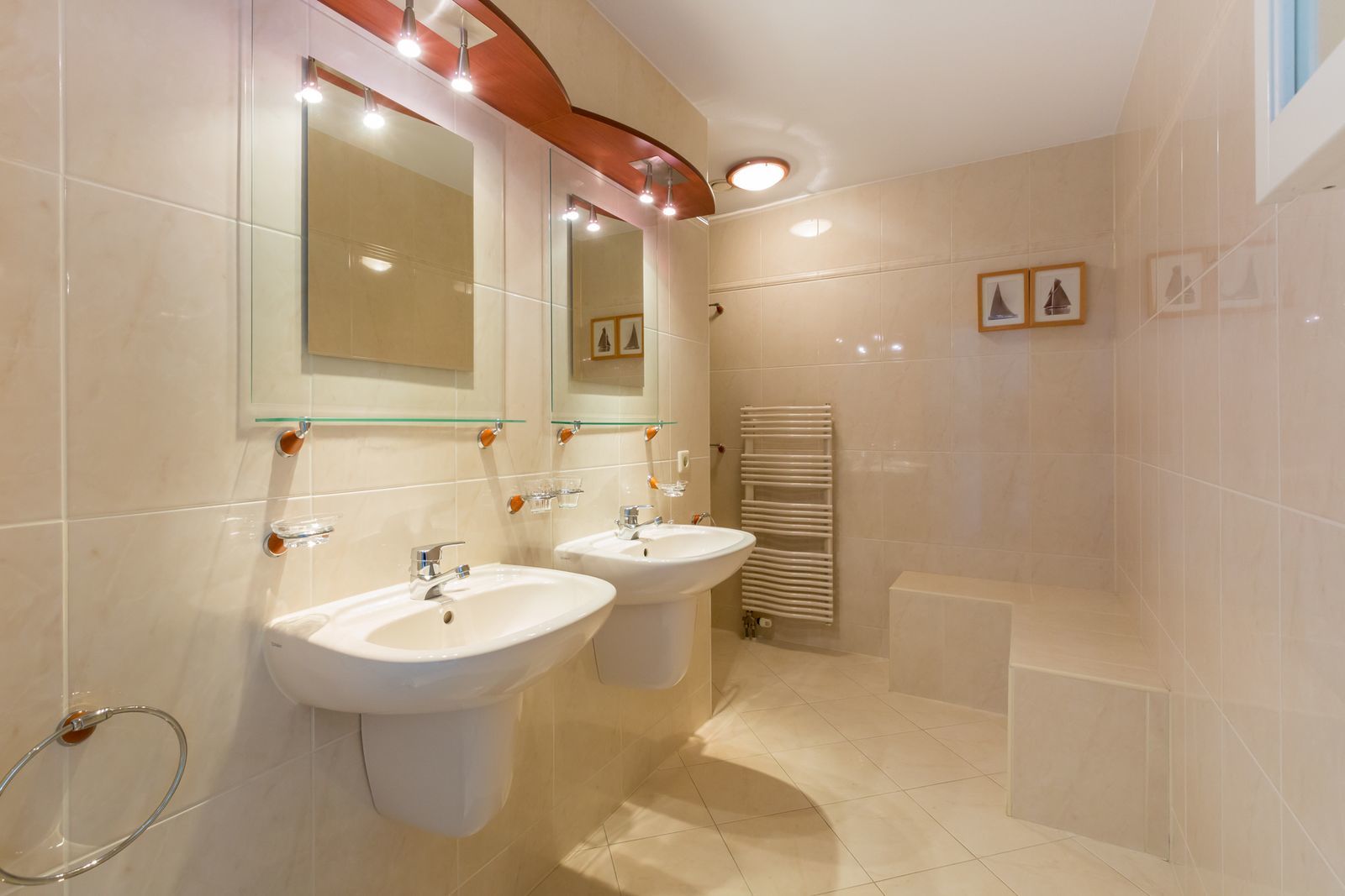 Er zijn 3 slaapkamers, waarvan één kamer met een tweepersoonsbed. De andere twee met eenpersoonsbedden. De badkamer is uitgerust met ligbad, douche, wastafel en wc. Een kinderbedje en -stoel is beschikbaar.